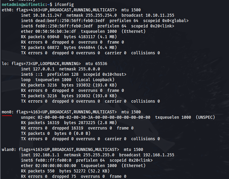 There is a wireless mon0 (monitoring) interface there that would typically listen and receive information by an attacker.