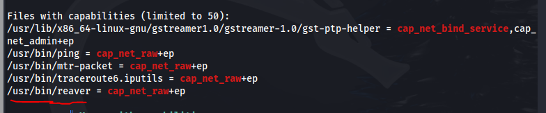 Reaver is a wireless attack tool so this stands out. The cap_net_raw means that it has full access over network sockets. This is a specific tool used to attack WPS (should be disabled on all routers). We are able to use this tool on the machine to advance our mission. We can specify the interface and target BSSID of the wireless access point (see below):