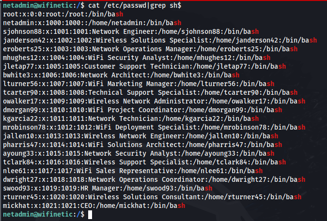 Now that we’re on the box, obtain your user.txt flag, and we should start enumerating for a potential privilege escalation vector. Starting with the simplest search of what is around us and moving toward more complex potential vectors (to remove one, we can’t run sudo -l as the netadmin user).