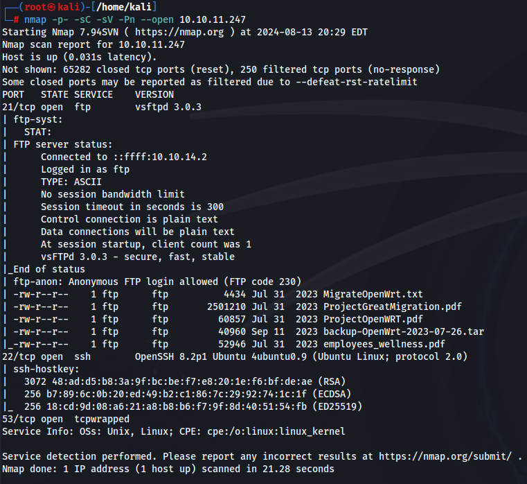 VSFTPD 3.0.3 is not vulnerable to anything interesting. We do have anonymous access though. This creates a great opportunity to access an FTP server and comb through information for leads.