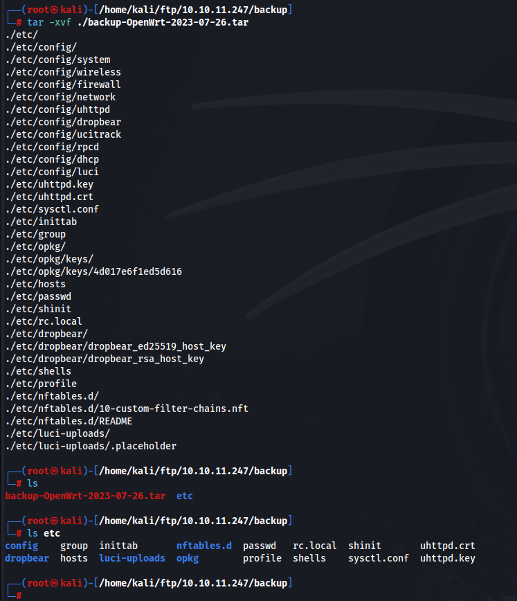 We have some information now. We are going to move on to extracting the contents from the backup (tar) file we found. Create a new directory and move the tar file into that one to unzip (these can spill a lot into one directory sometimes).